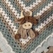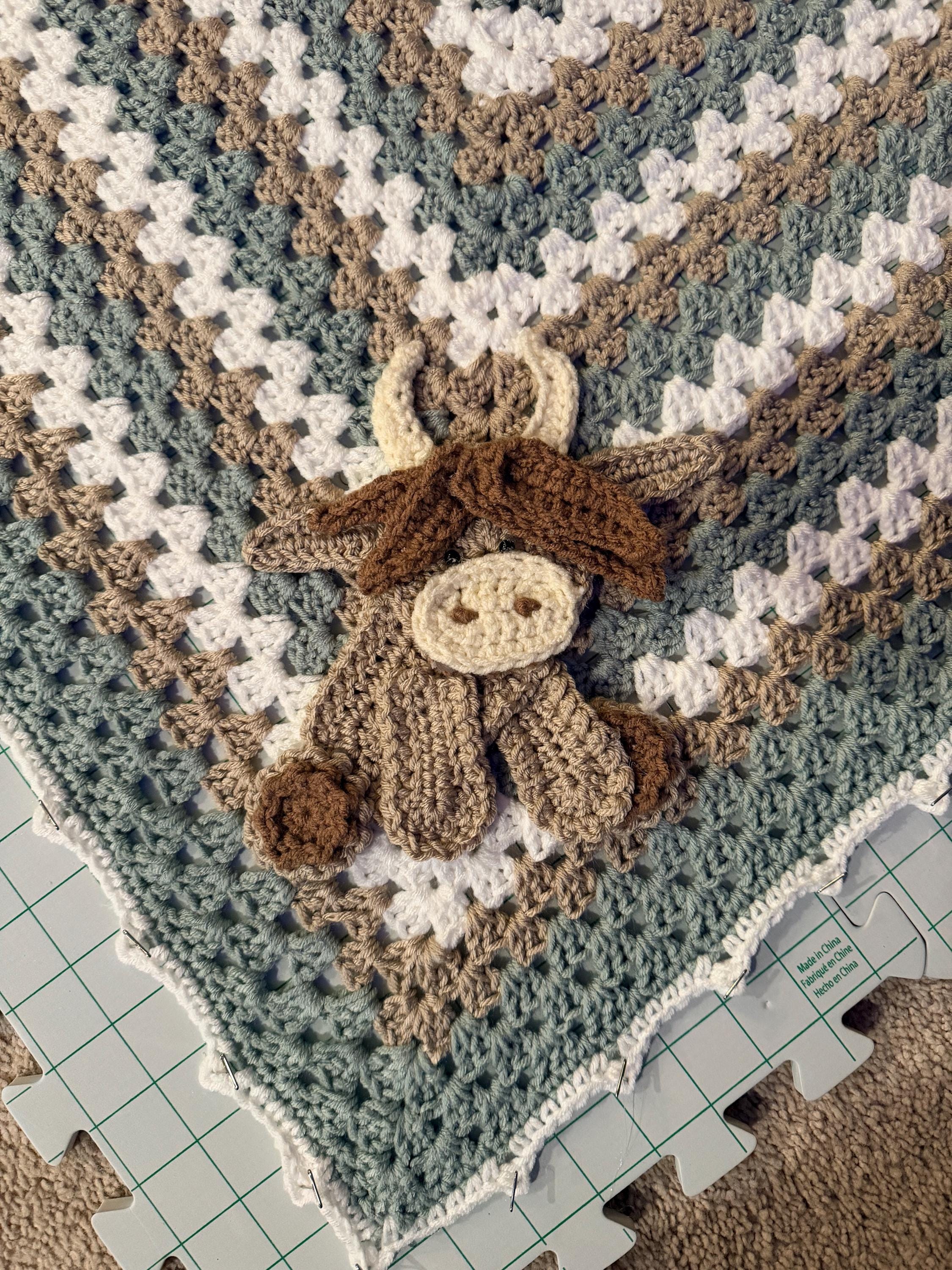 Quick to work up but a little bit of a pain to put together (haha). I hot glued each piece together then onto the blanket. The body in the picture of the instructions looked longer but still loved this.