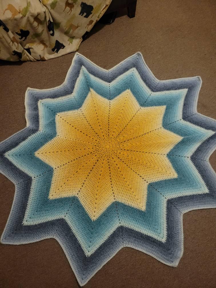 *Blanket pattern can be ANY size you want because this is written in rounds and the qty of rounds is up to you. You can choose to do more rounds than I did if you'd like a bigger blanket. Details in pattern.