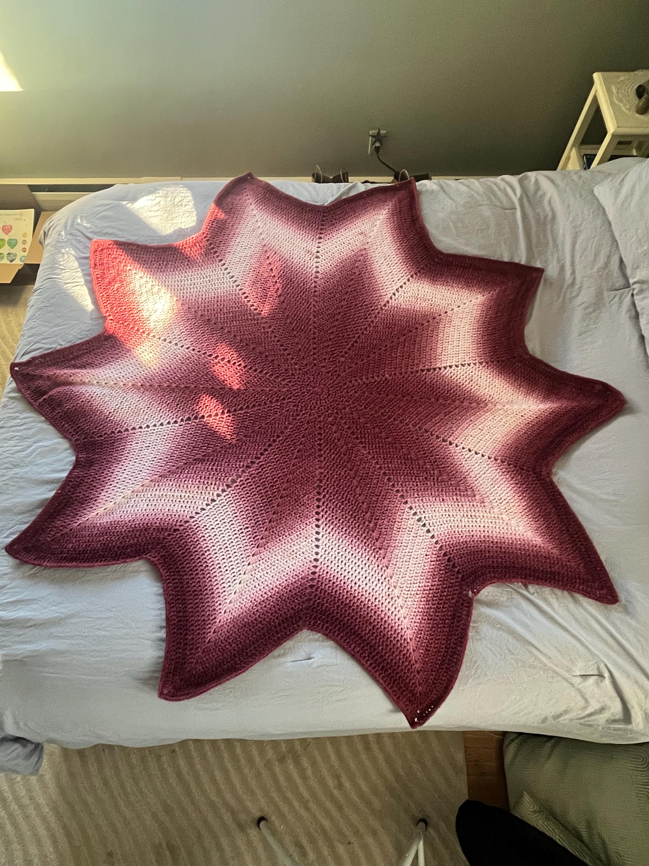 Well written pattern. I had tried a similar pattern and gave up on it. The blanket, as shown, is the 20 rounds in the pattern. I plan to continue adding rounds until I run out of the yarn shown. Thank you!