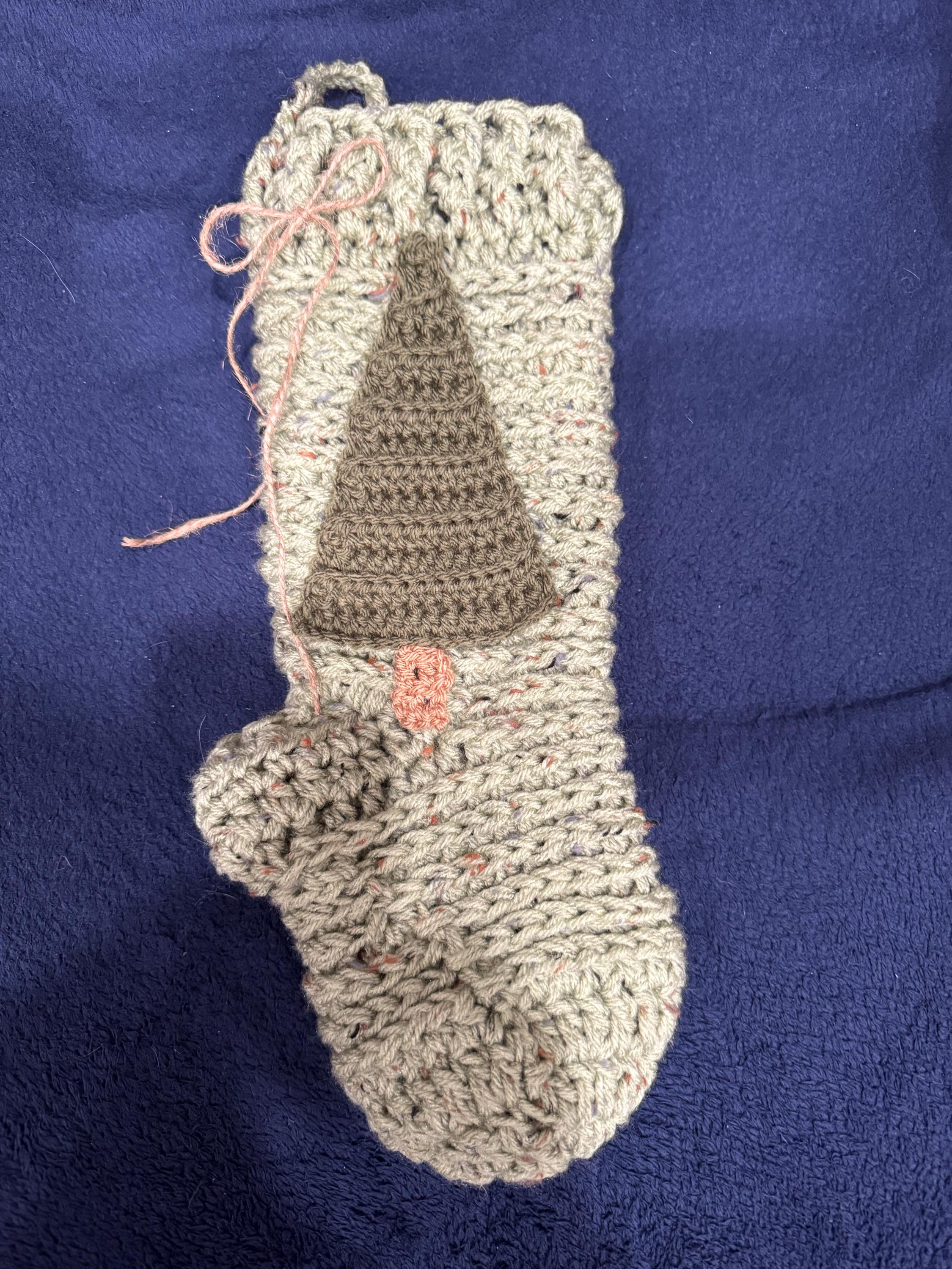 *Stocking works up to be an oversized stocking - approximately 19" tall from rim to toe, using a 9mm hook and 1 strand of bulky 5 weight yarn.