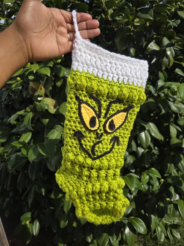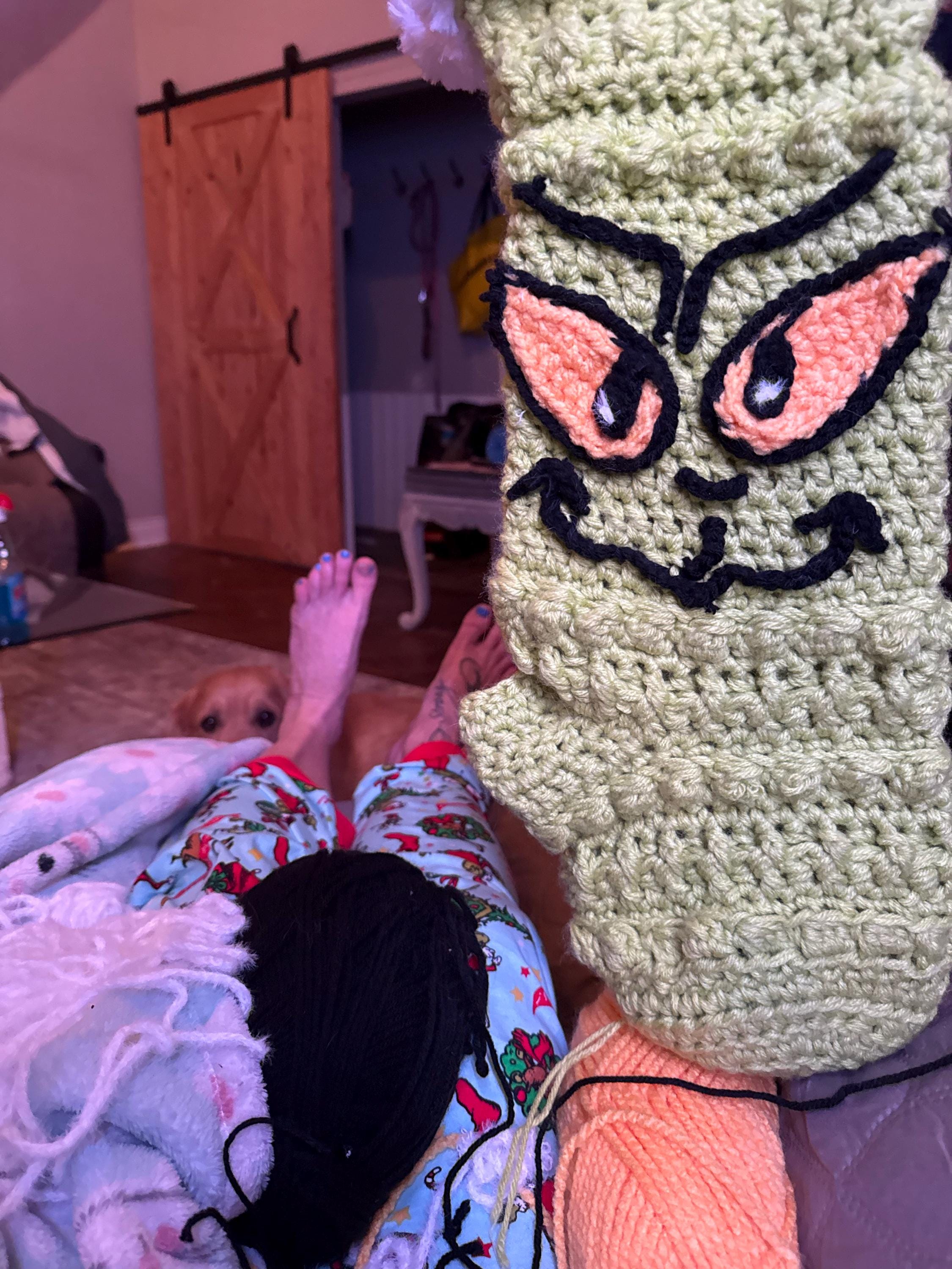 *Stocking works up to be an oversized stocking - approximately 19" tall from rim to toe, using a 8mm hook and 2 strands of 4 weight yarn.