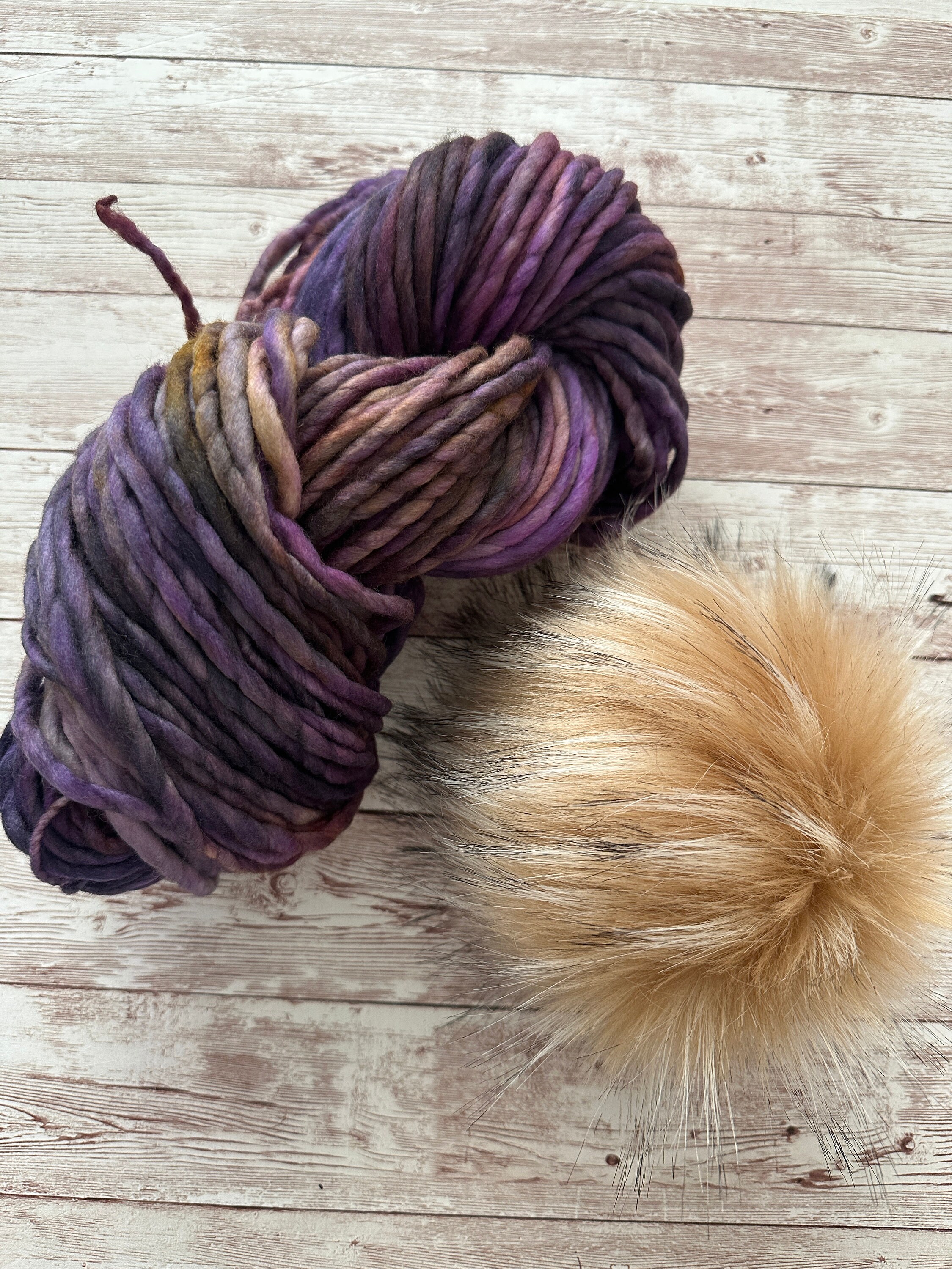**Please note, I do my best to accurately photograph colors, but being these are hand-dyed, colors can vary. Poms/Stitch markers could vary depending on stock, but you'll always get coordinating pieces!