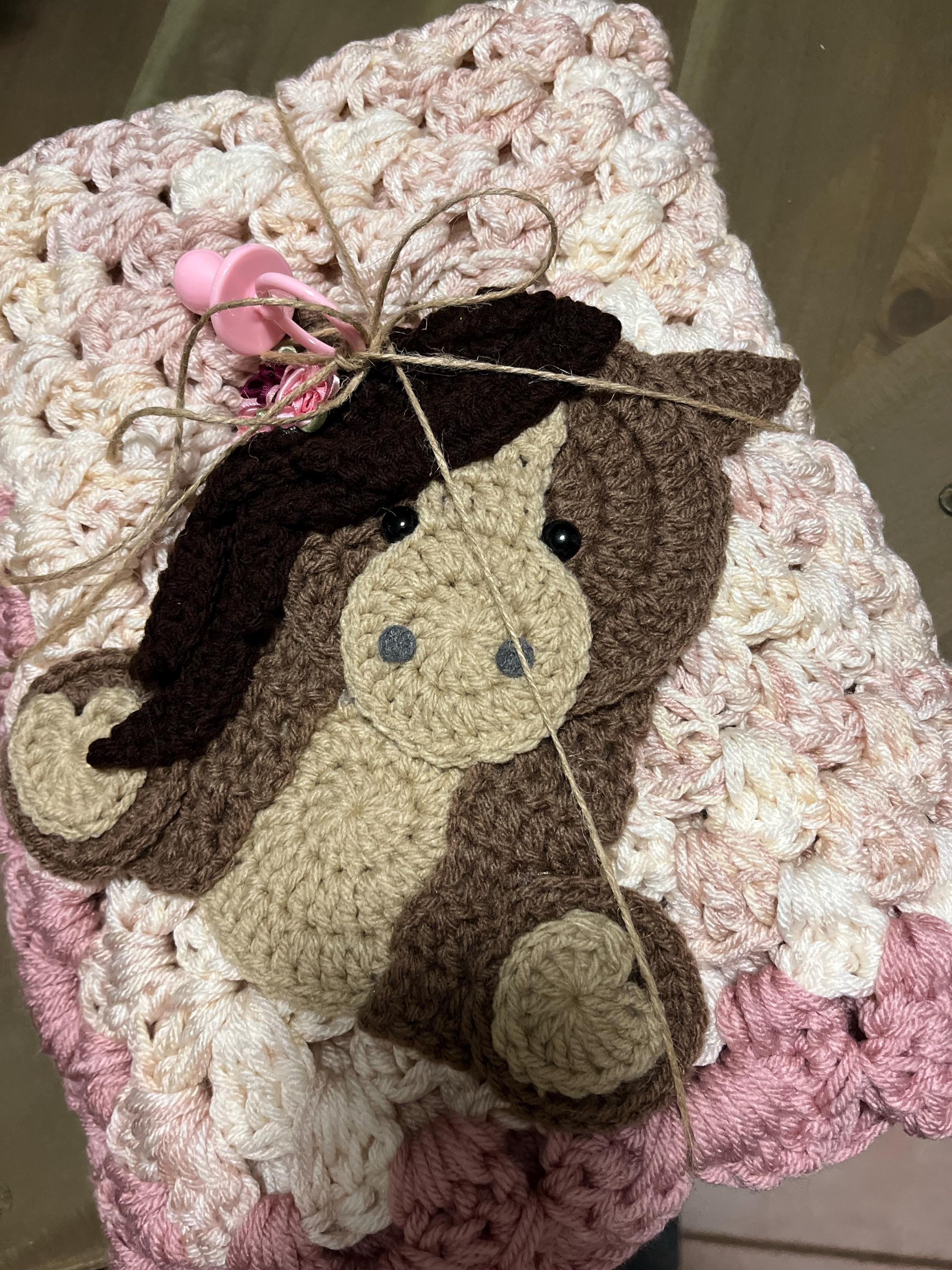 Crocheted Blanket with Crocheted Applique, handmade with love!
