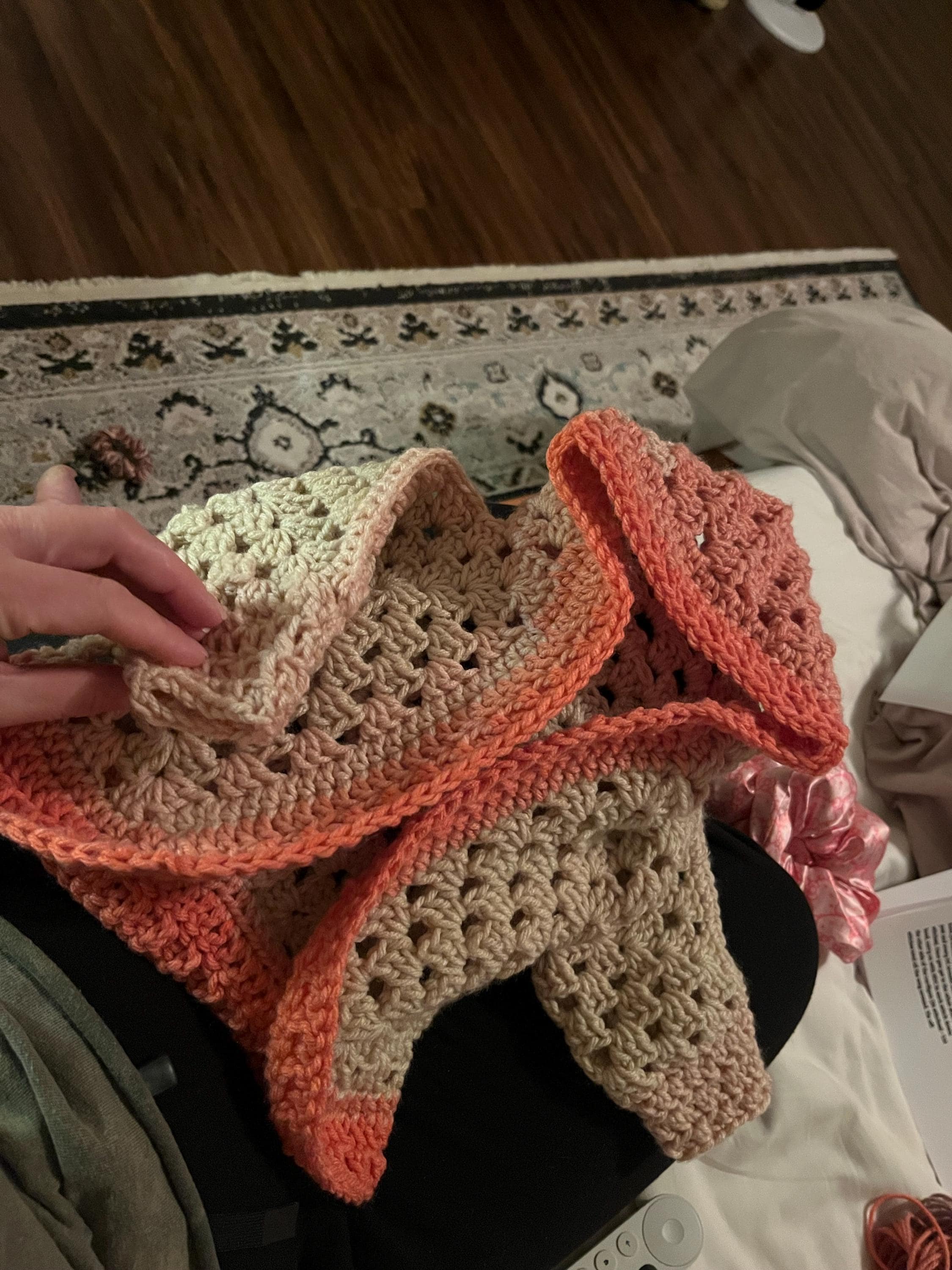 Pattern is written for 6-12M sizing, with tips on how to do 0-3M size and 12-24M size. This pattern is written in the round, so you easily could adjust it for any size you'd like.