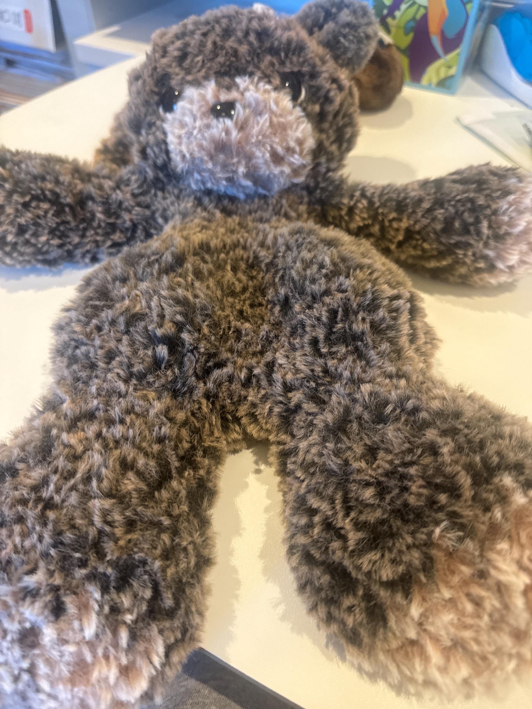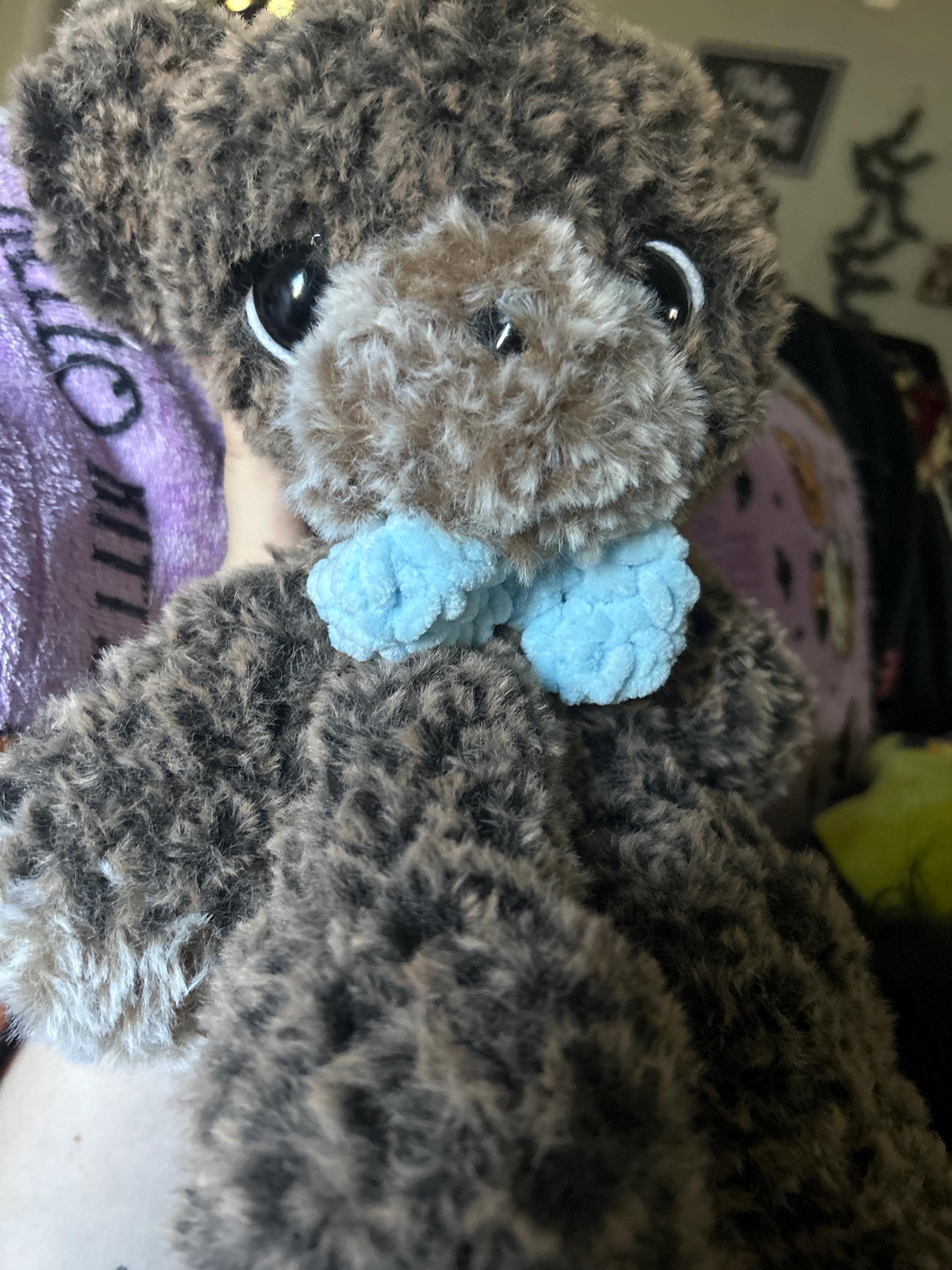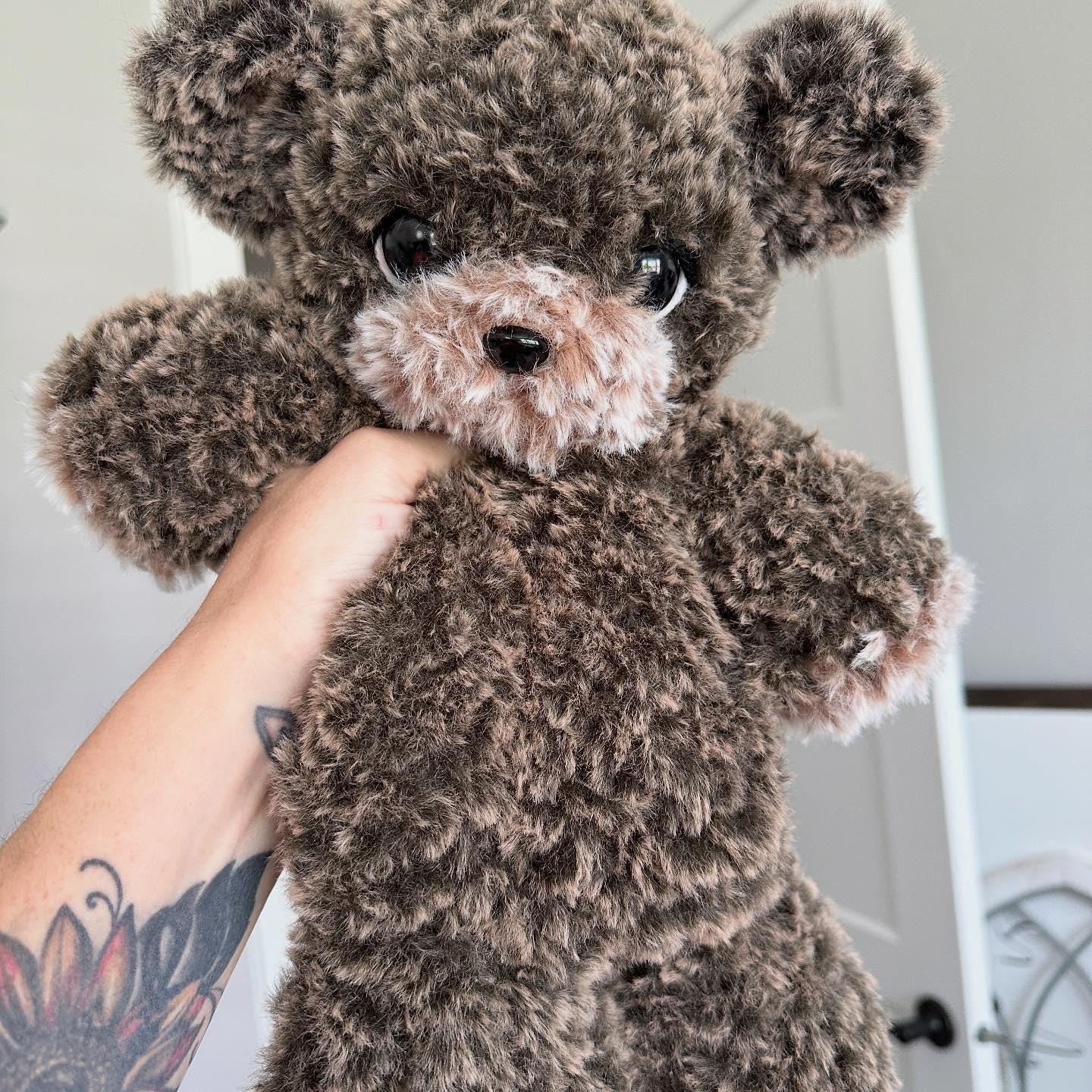 This little cutie measures approximately 16” tall from top of head to bottom of feet, and approximately 10” wide at the widest part of the head.