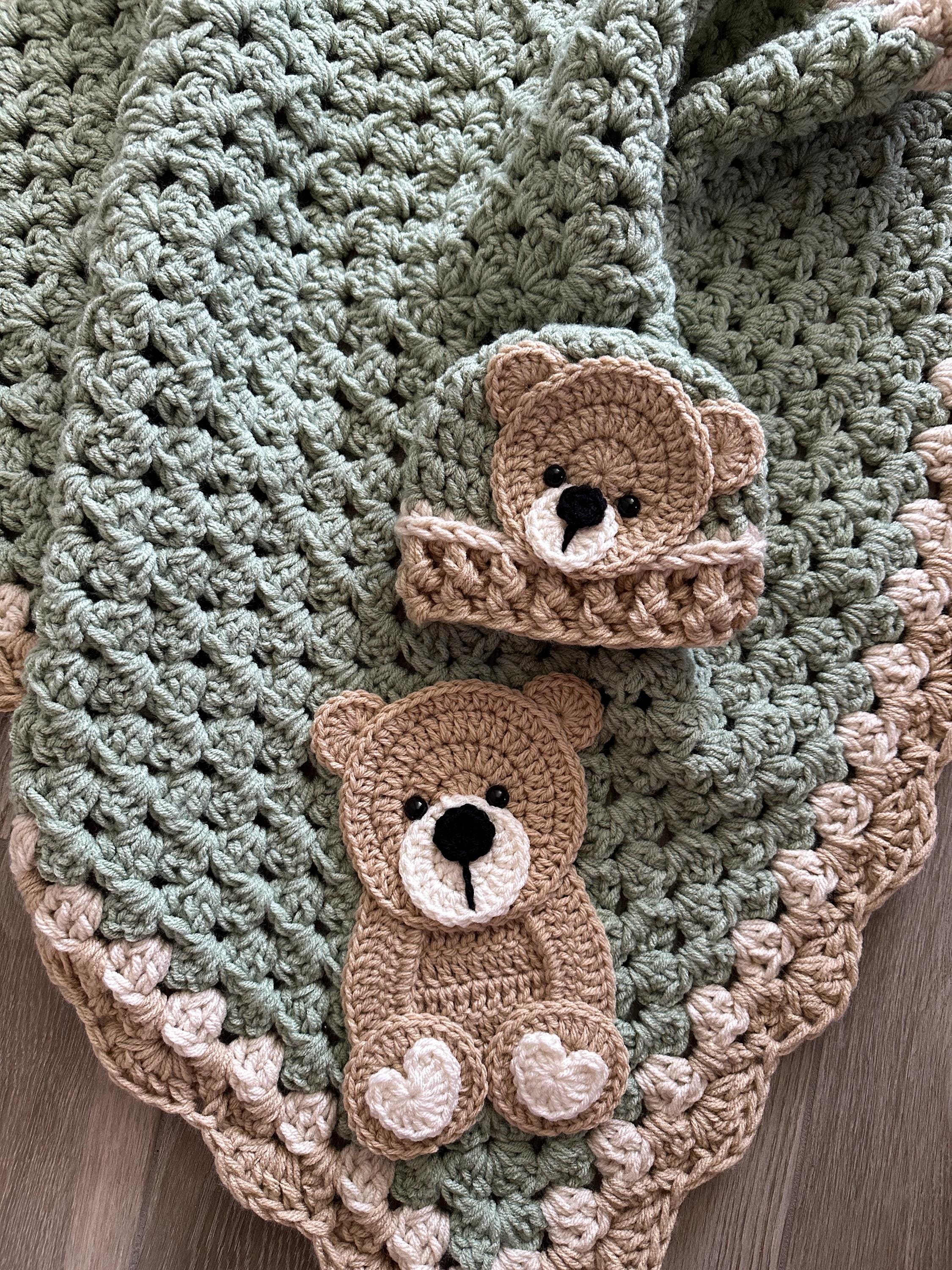 Crocheted Blanket with Crocheted Applique, handmade with love!