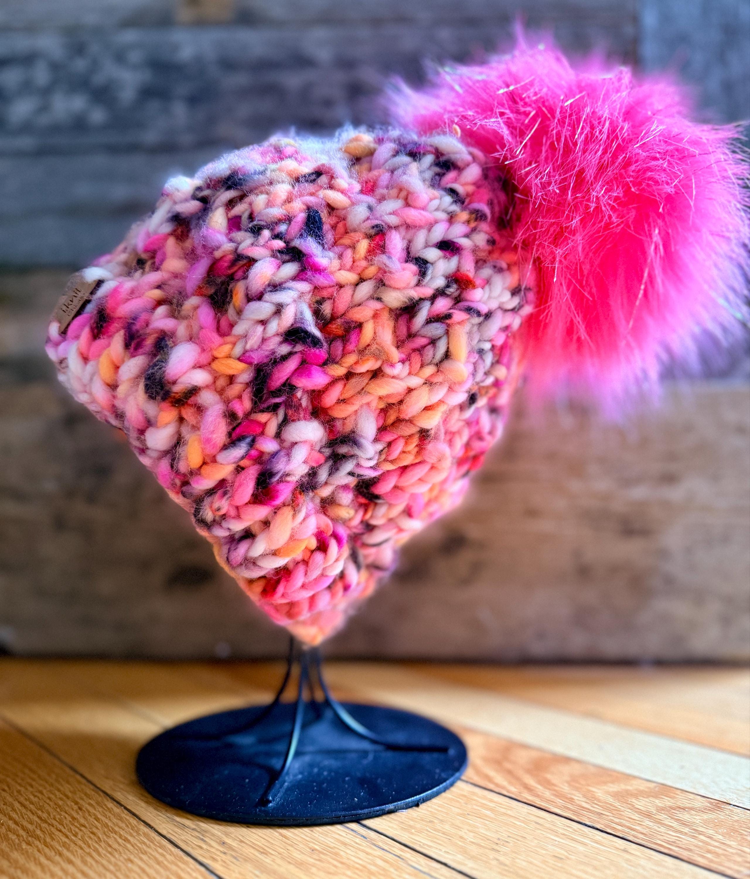 Fun and playful, A Lil Loopy is named after a bestie boo who inspired its bright personality. This hand-dyed yarn blends soft neon pinks and oranges with bold speckles, creating a cheerful, energetic colorway that adds a pop of fun to every project.