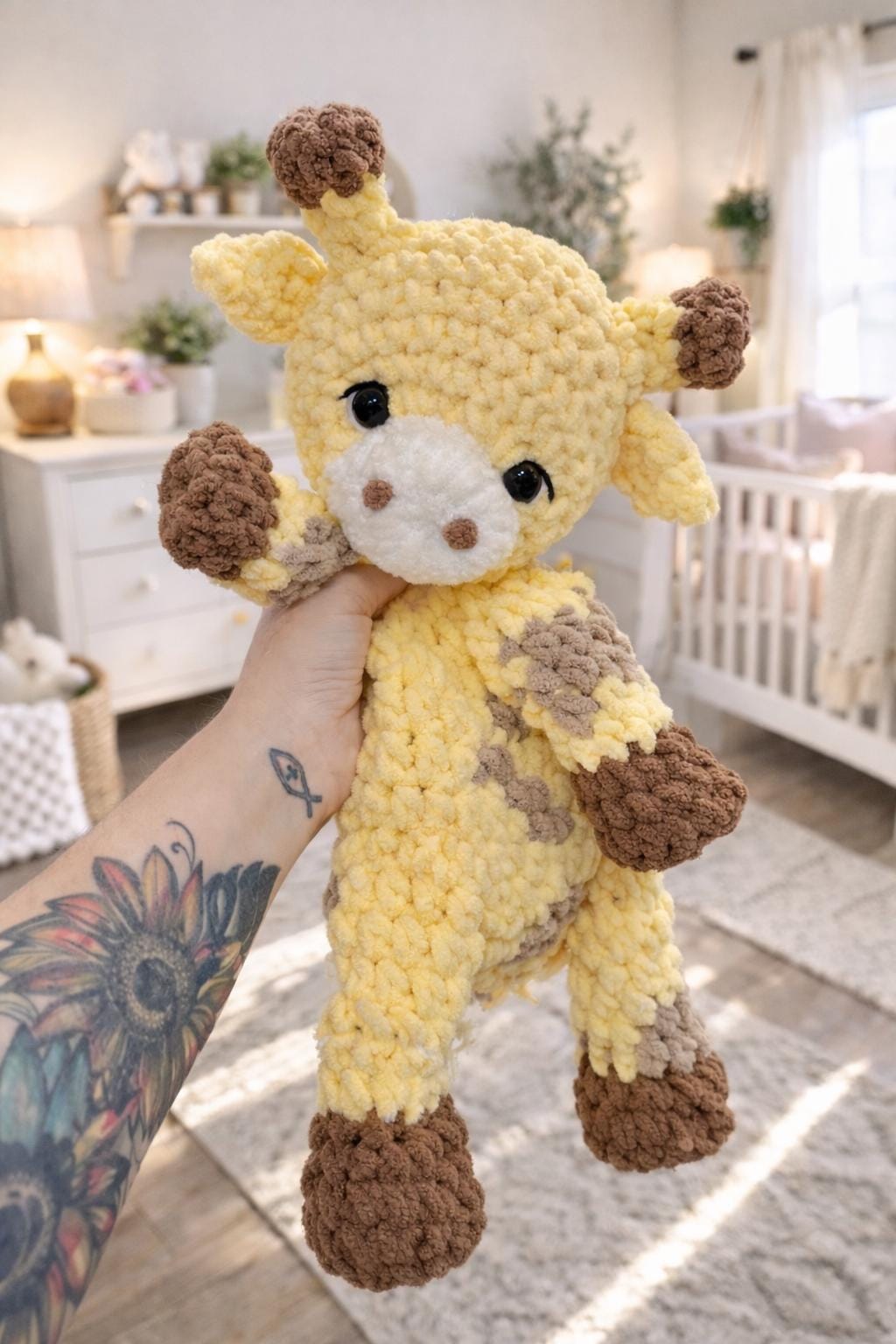 Please note: This snuggler is designed for decorative/collector use and includes plastic safety eyes. The safety eyes are locked and reinforced for added safety but may not be suitable for children under 3yrs old. For extra baby-safe versions, please request embroidered features, in the notes at checkout.