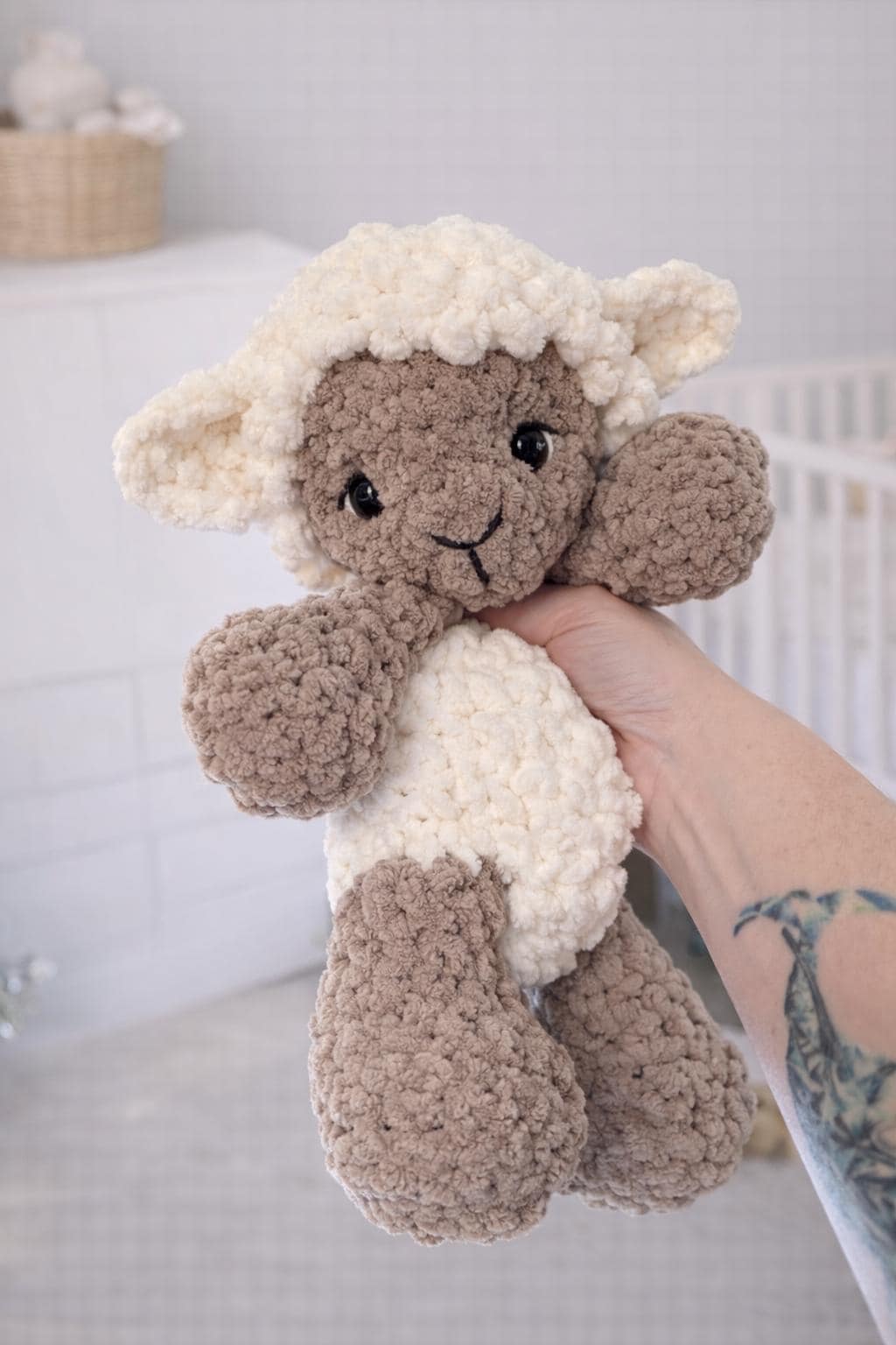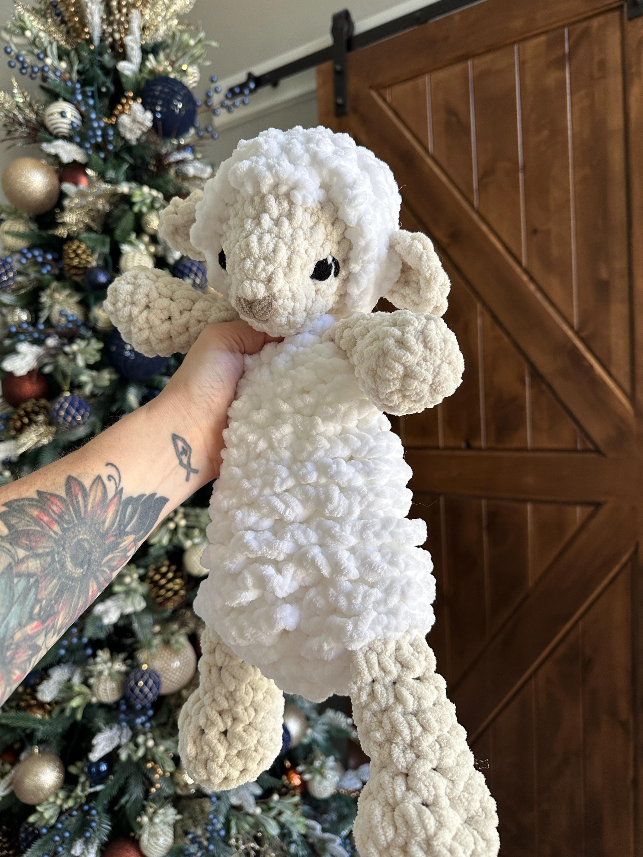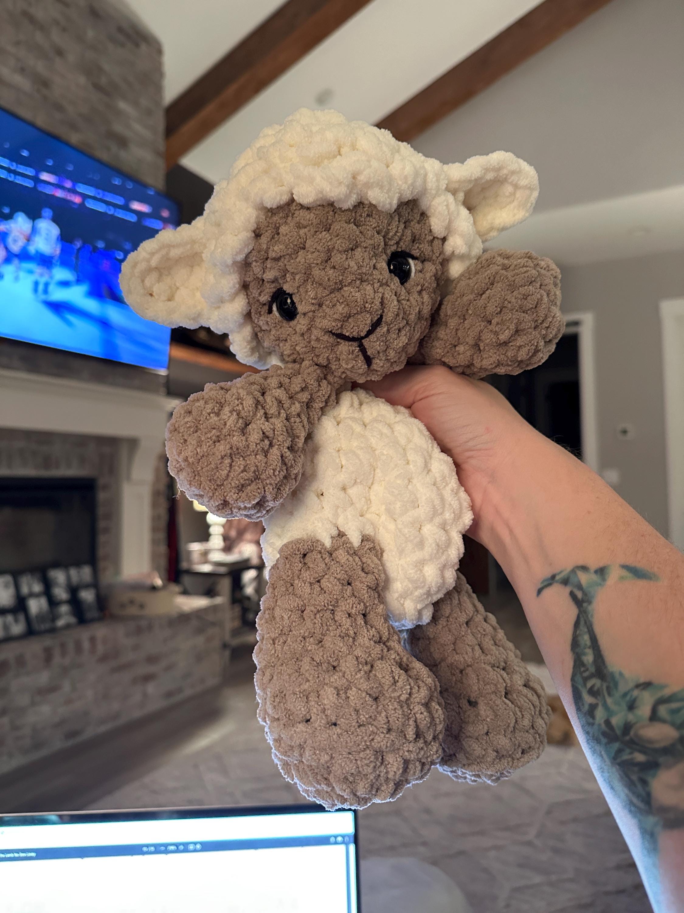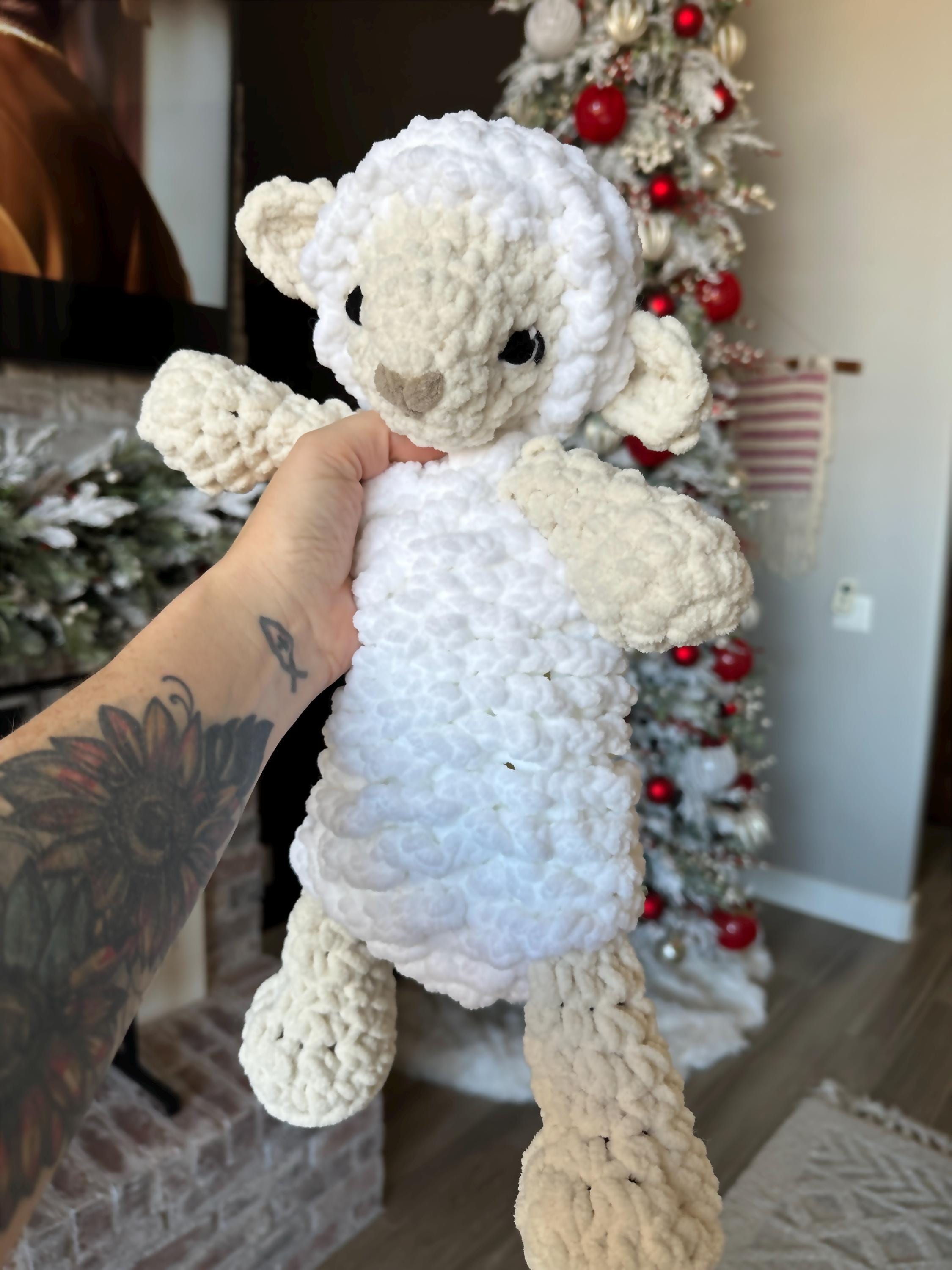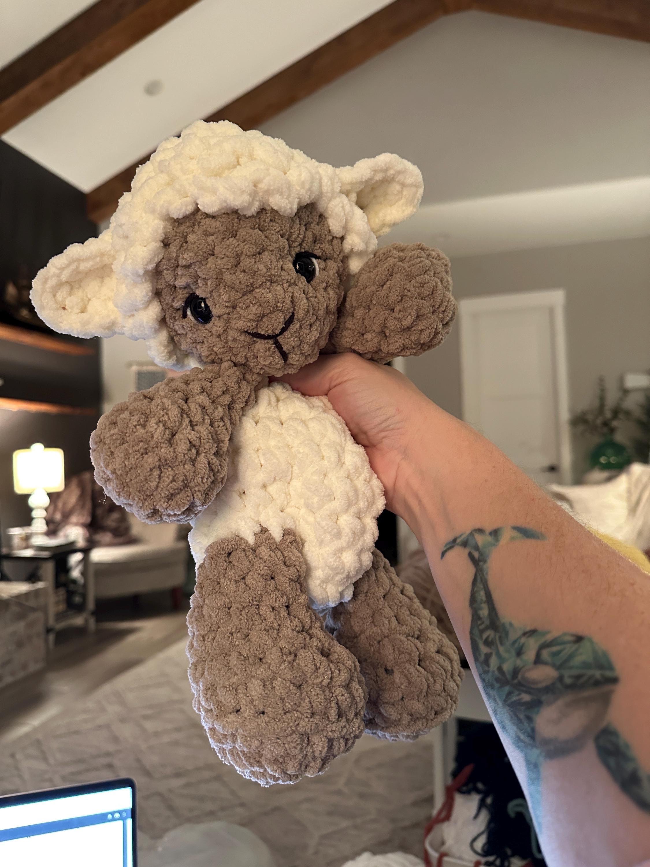 This little cutie measures 16” tall from top of head to bottom of feet, and approximately 7” wide at the widest part of the body.