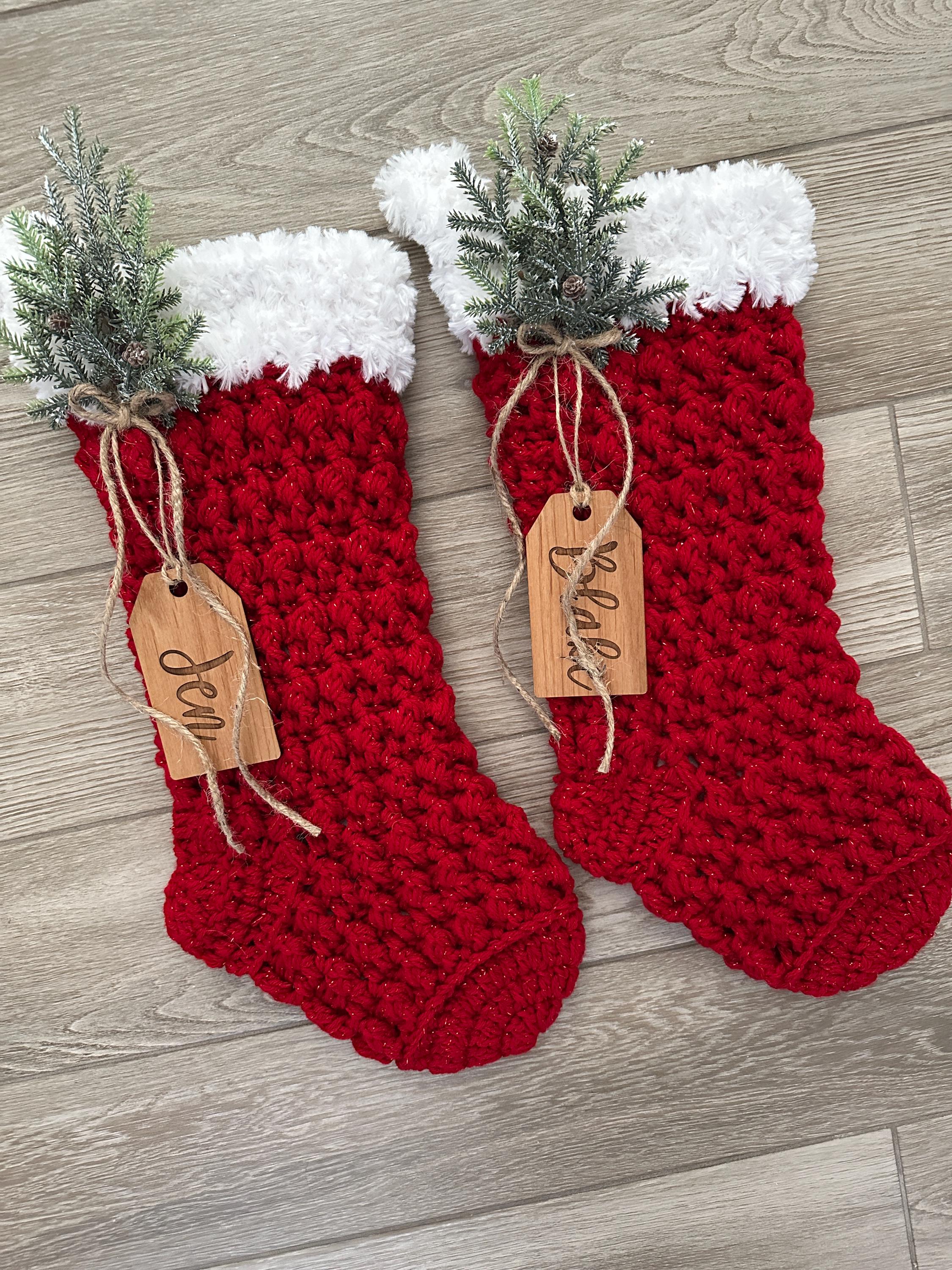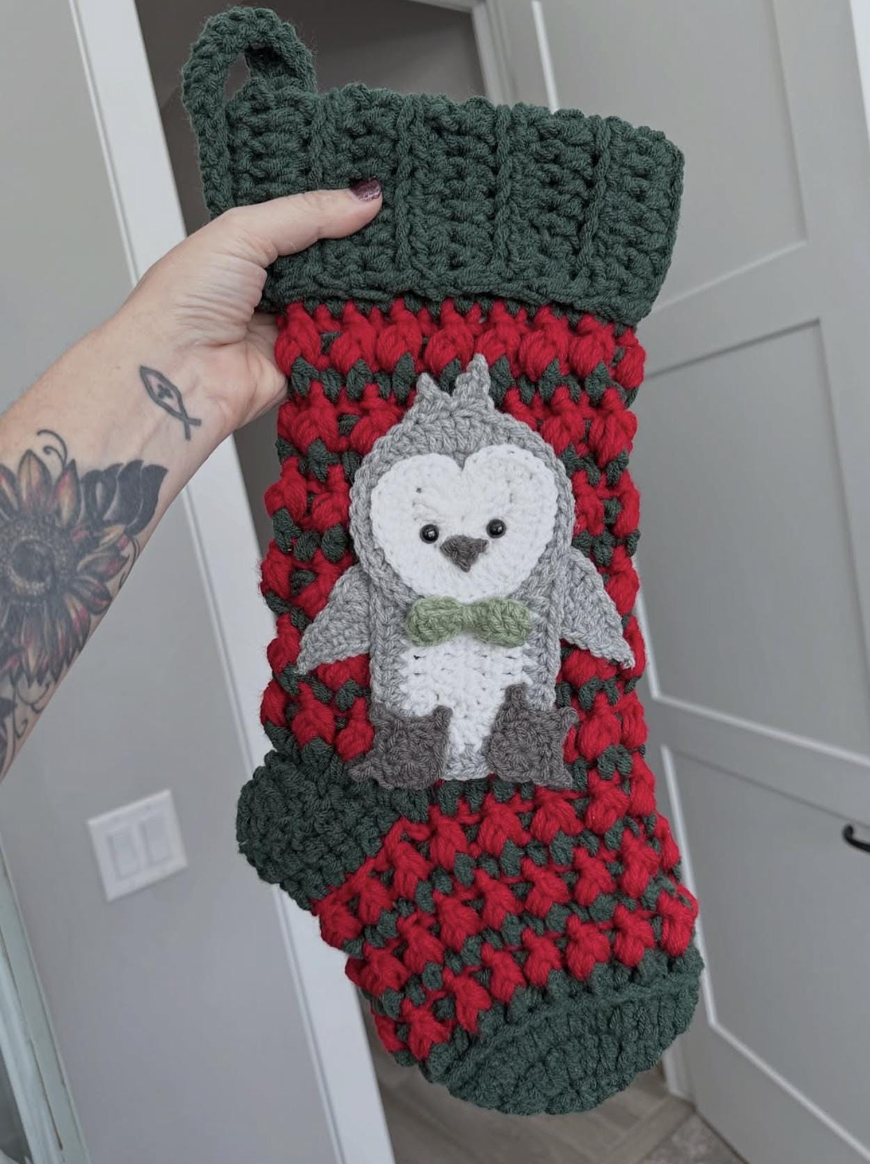 *Stocking works up to be an oversized stocking - approximately 20" tall from rim to toe, using a 8mm hook and 2 strands of 4weight yarn.
