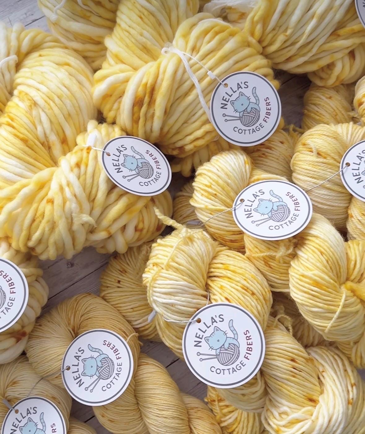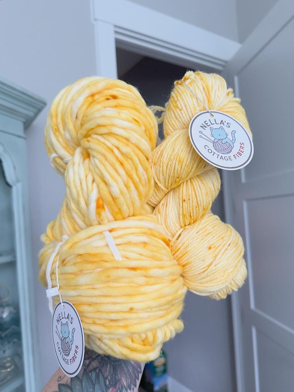A soft and buttery yellow, with small speckles of contrast- this Duckling yarn will give you all the spring and summer vibes- AND works perfect for fall too! A true year-round color! It works up beautifully as a stand-alone color, and pairs perfectly with contrasts as well!