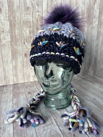 ✨ Adult Hand Knit Merino Wool Bonnet | Chunky Knit Hat with Removable Pom | Cozy Winter Bonnet | Ready to Ship ✨