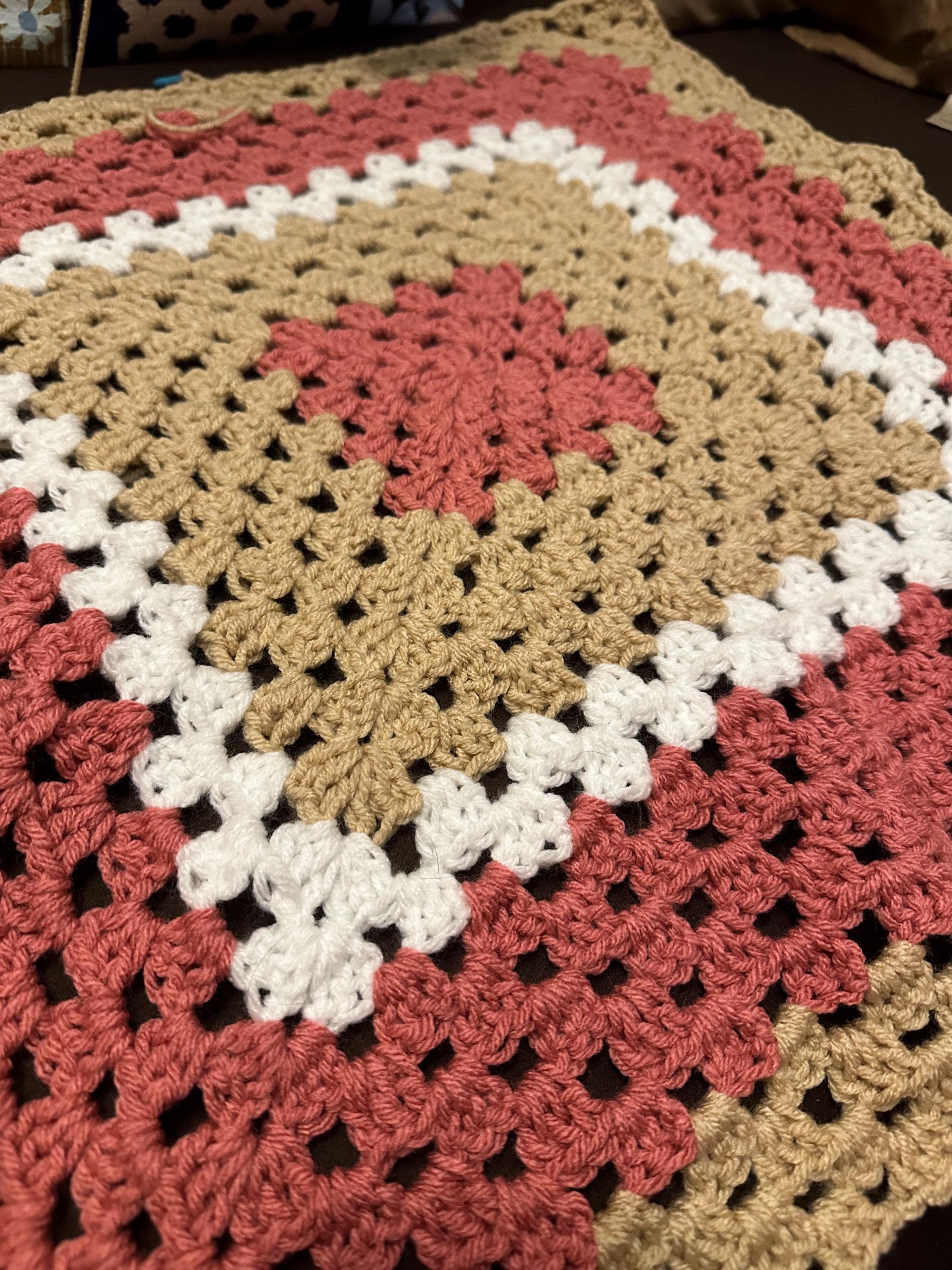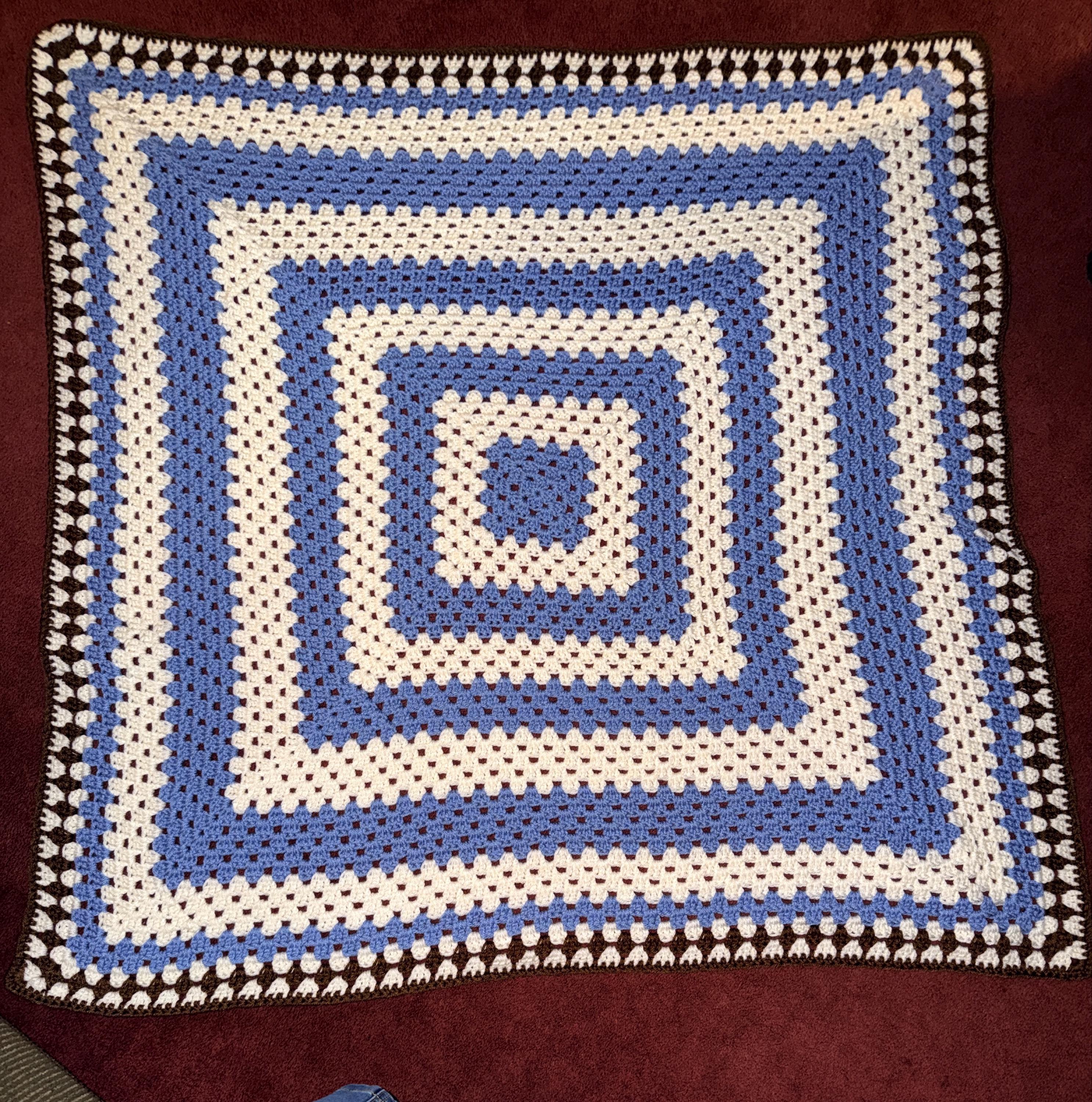 *Blanket pattern can be ANY size you want because this is written in rounds. You choose how many rounds you want to do - but the typical size I go for is about 32" square. You can add more rounds to make it as big as you want.