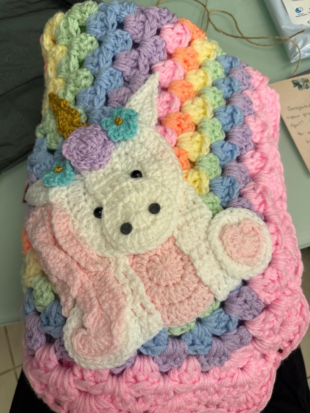 Crocheted Blanket with Crocheted Applique, handmade with love!