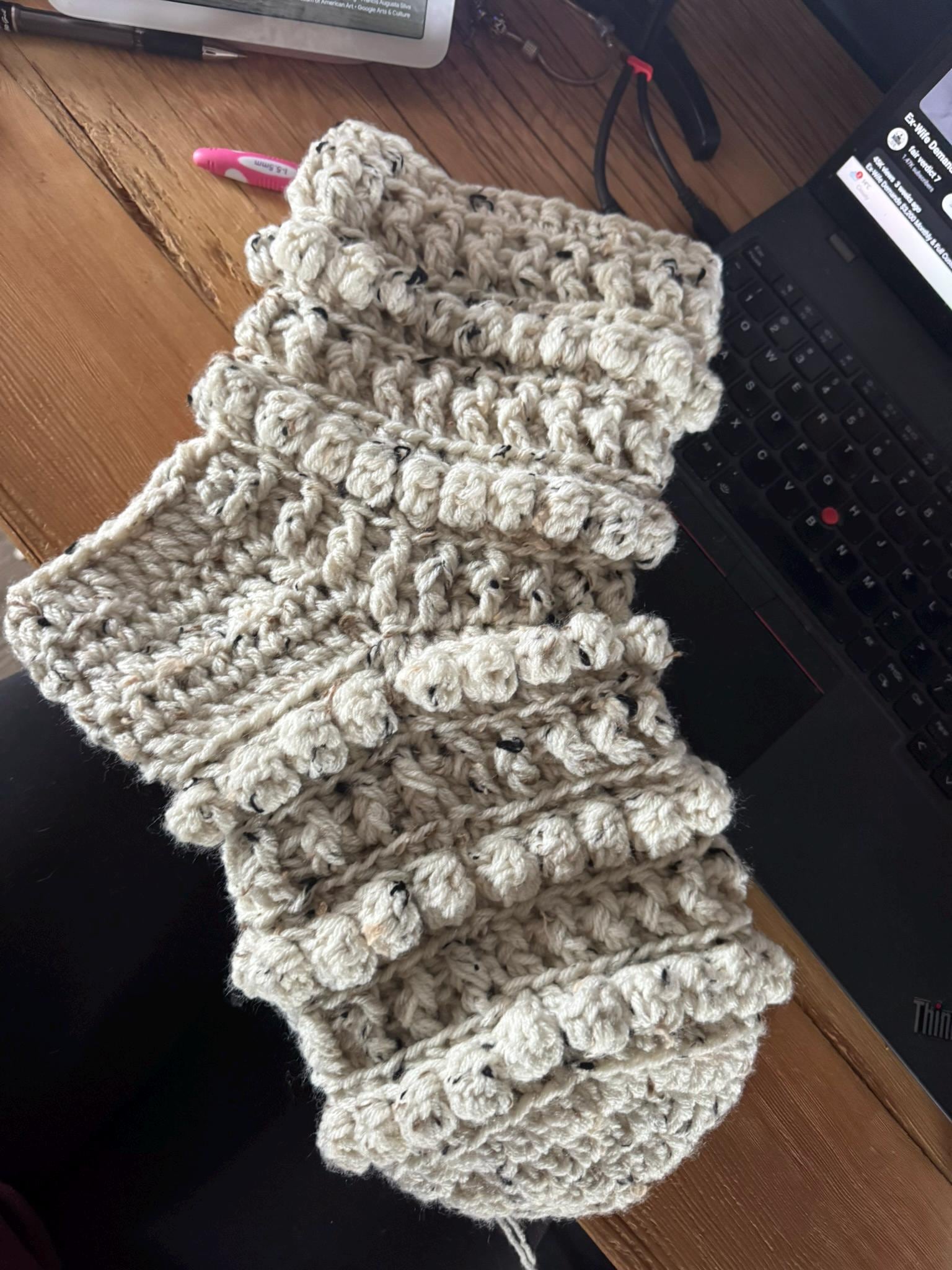 *Stocking works up to be an oversized stocking - approximately 19" tall from rim to toe, using a 5.5mm hook and 2 strands of 4weight yarn.