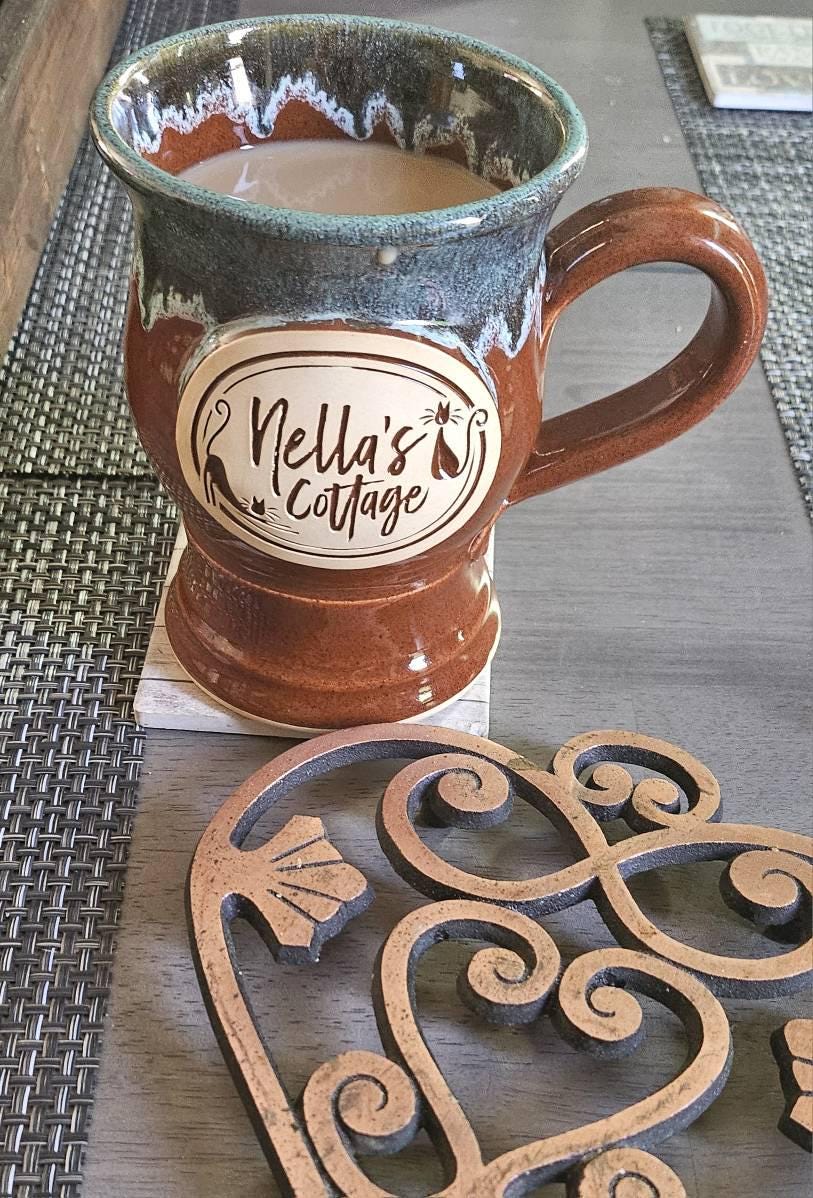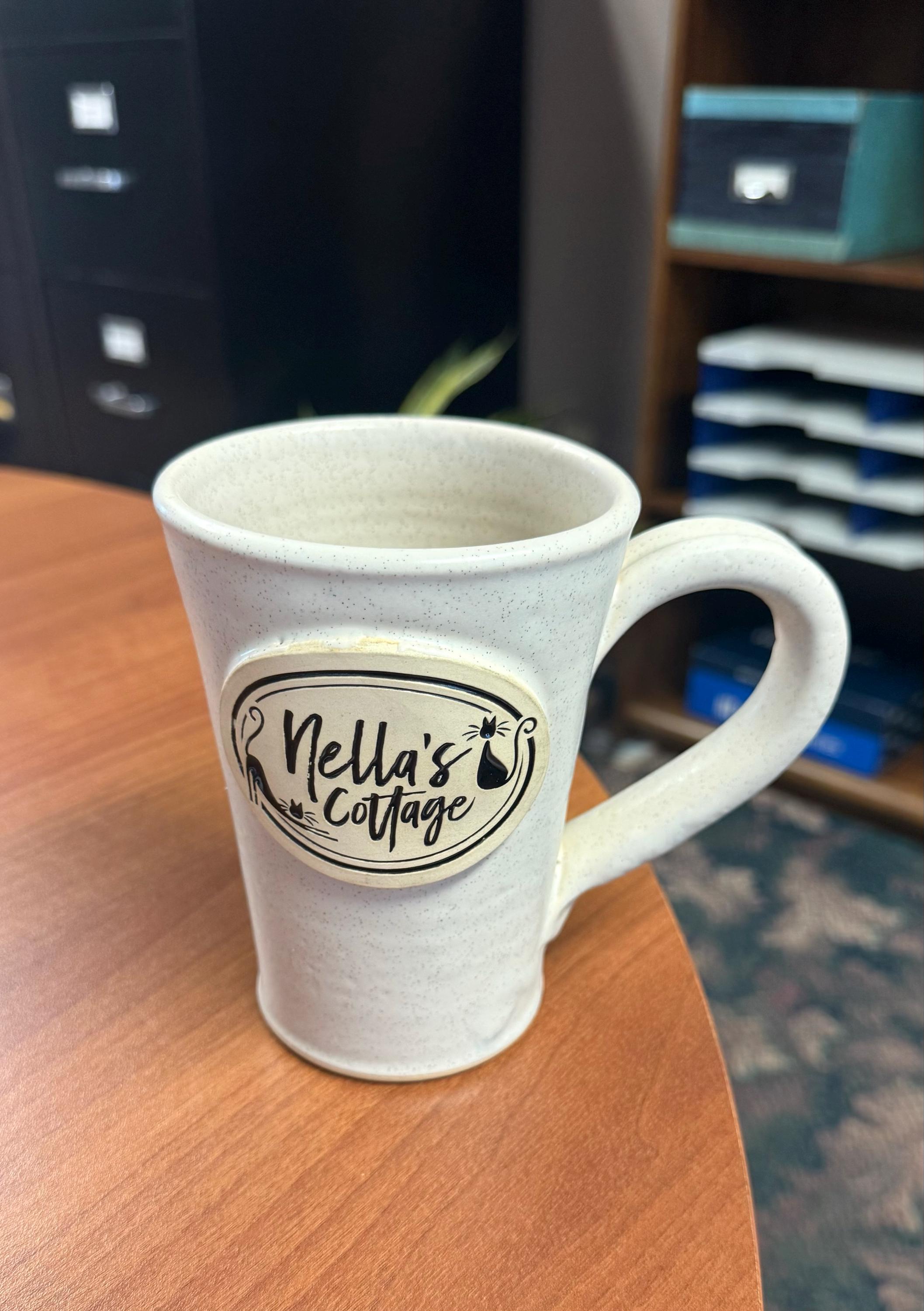 Each mug features the Nella’s Cottage emblem and is lovingly handmade by Grey Fox Pottery right here in the USA. Their weight, craftsmanship, and timeless design make them perfect for daily use or gifting.